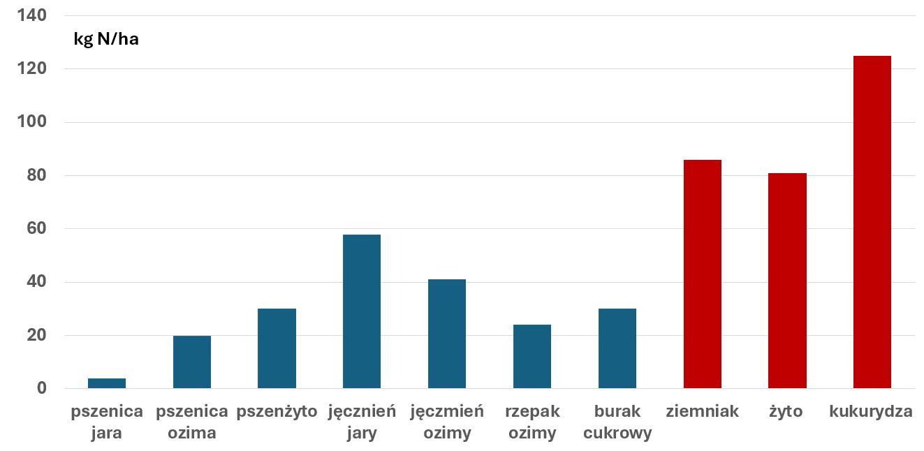 Powyższe zakresy uwzględniają tzw. azot działający (dostępny na bieżąco). W następnym sezonie wegetacyjnym nastąpi uruchomienie tego składnika z form organicznych. Można założyć, że będzie to dodatkowo 50 – 70% podanych wyżej wartości.